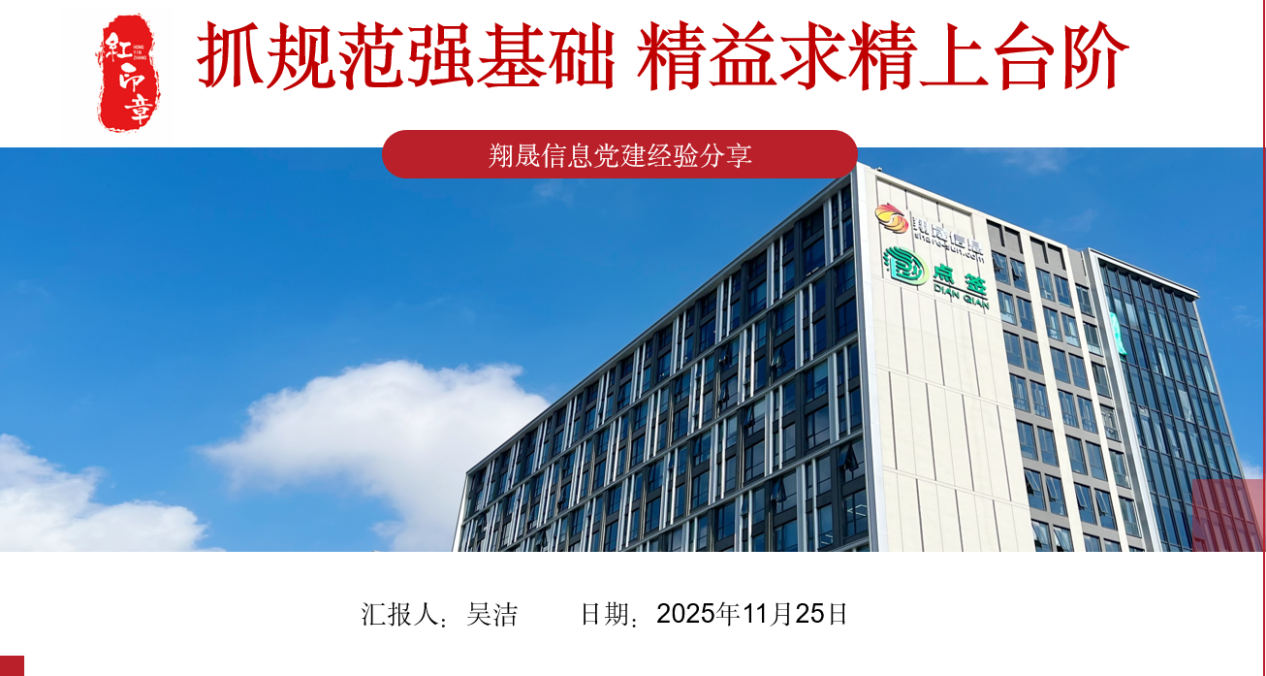 江蘇翔晟信息技術(shù)股份有限公司黨支部副書記吳潔以“抓規(guī)范強基礎(chǔ),精益求精上臺階”為題,從黨支部基本情況、日常工作管理、工作臺賬管理、總結(jié)與思考四個方面為大家作了詳細的分享。